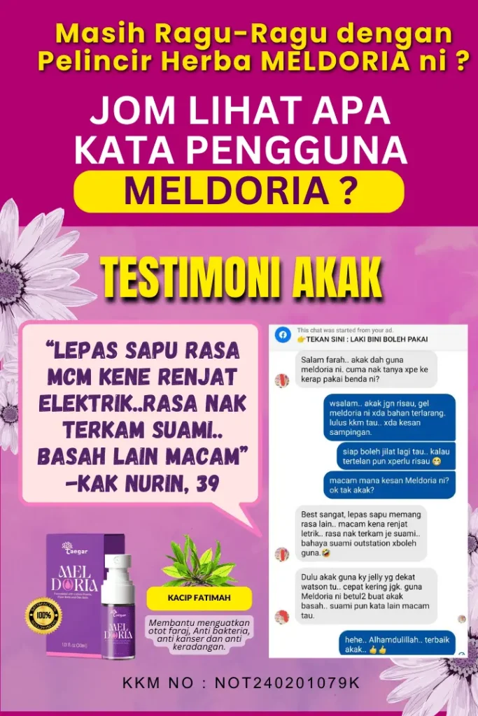 SEKARANG DAH JELAS KAN BANG APA PELINCIR HERBA MELDORIA NI BOLEH BUAT ?