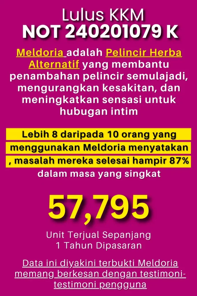 PALING PENTING TAK PERLU LAGI NAK BELI BANYAK PRODUK . BELI MELDORIA JE DAH BOLEH KONGSI LAKI-BINI